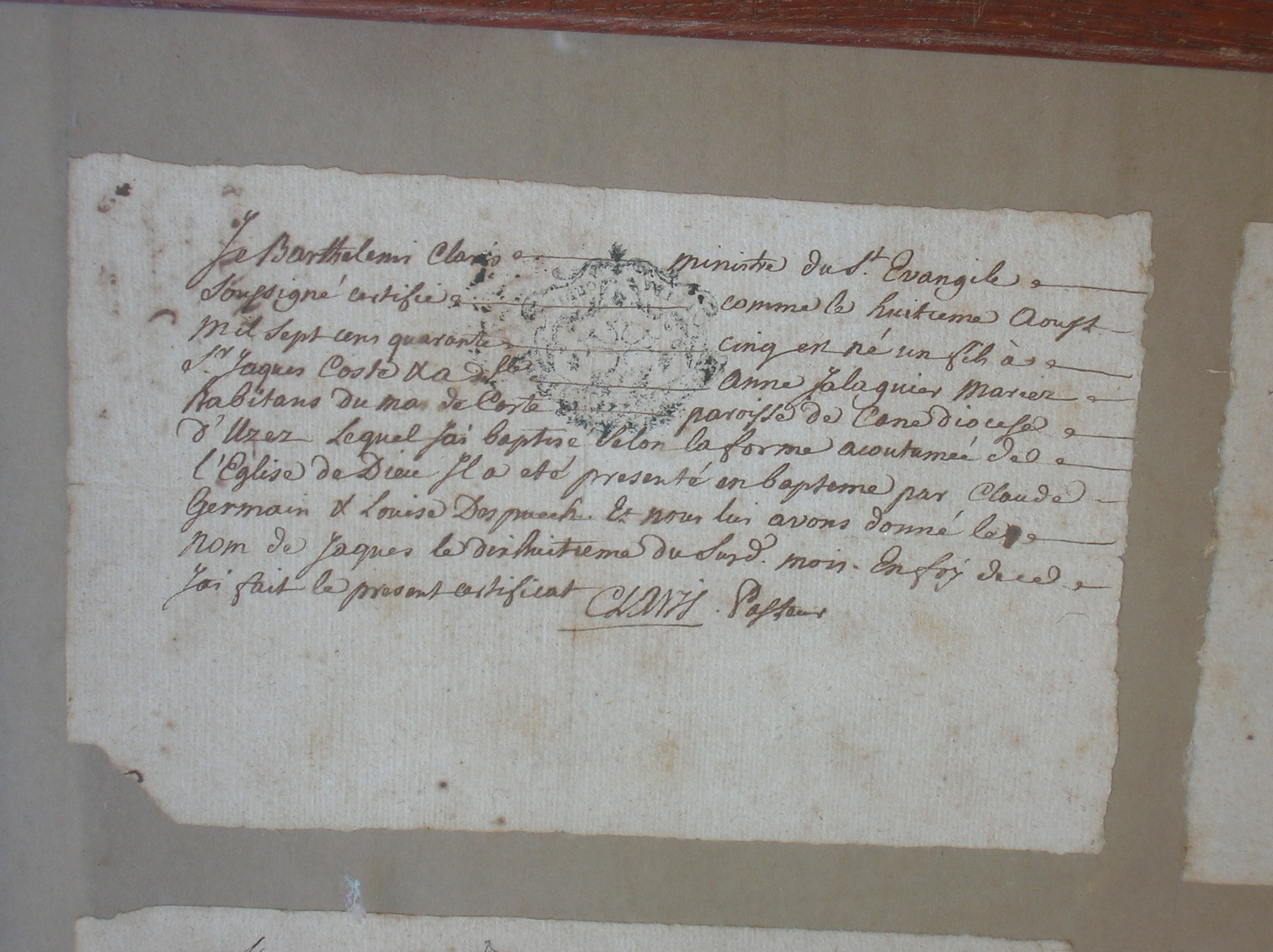 leur sera nécessaire" - fait a Sommières, par